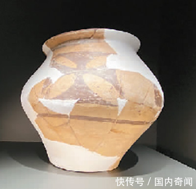 图为庙底沟仰韶文化博物馆展出的四瓣式花瓣纹彩陶罐。
