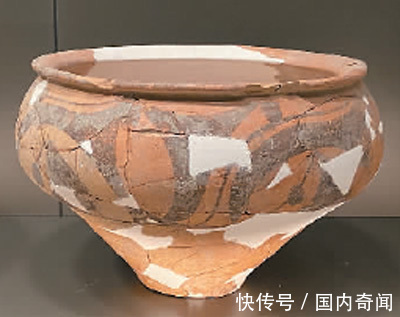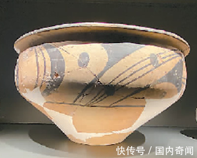 图为庙底沟仰韶文化博物馆展出的叶片纹彩陶盆。